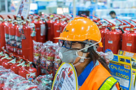 Bangkok, Thailand - March 15, 2016 : Fire equipment in exhibit hall home expo and hardware tools for home and garden in Bangkok Thailand.