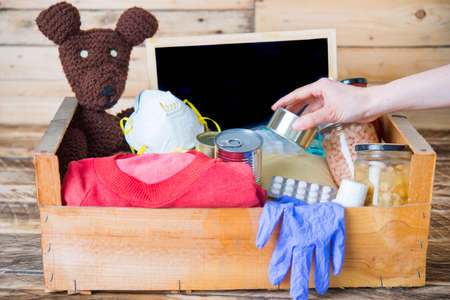 Donation box with food for needy people