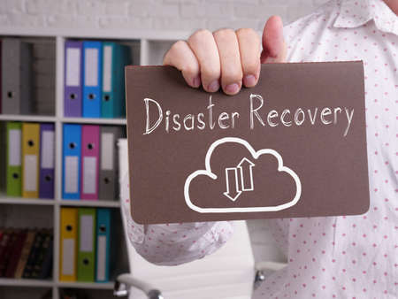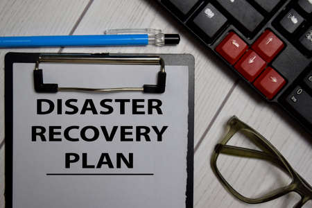 Disaster Recovery Plan write on a paperwork isolated on office desk.