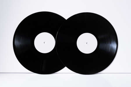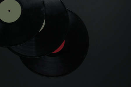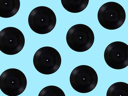 Vinyl records multiplied on soft blue background. Minimal abstract retro and vintage music concept. Retro technology idea.