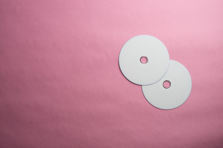 Many old CDs represent technology from the 90s. Stacks of CDs, old songs and old movies. which had been used before and placed on a white table. closeup, selective focus