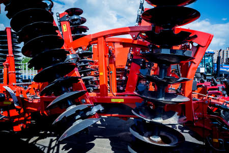 Modern agricultural machinery and equipment. Industrial details. Agricultural exhibition