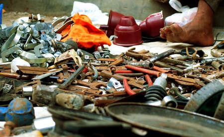 Metallic Scraps in a Yard: Embracing the Concept of Material Reincarnation through Recycling. Concept Metallic Scraps, Yard Recycling, Material Reincarnation, Sustainable Practices