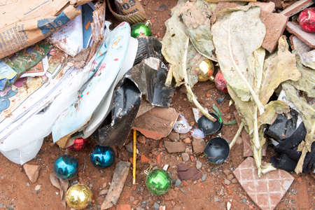 Garbage scattered on pebbles outdoors. recycling problem