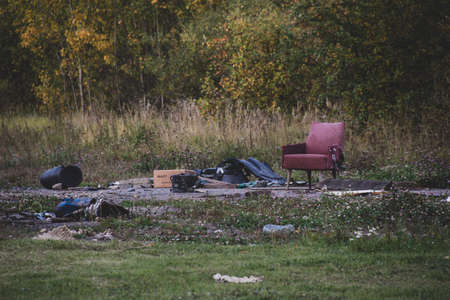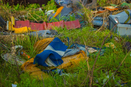 Photos of discarded items in the park. Clogging nature