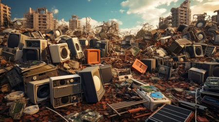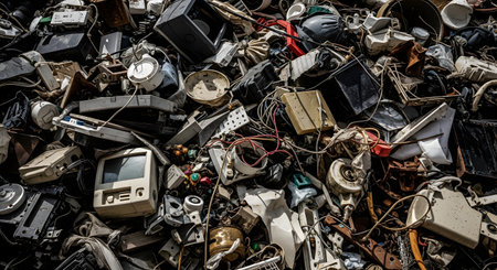 Garbage pile of renewable electronic hardware. Generative AI
