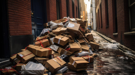 Stack of Cardboard Waste at home. Concepts of Paper Recycling and Waste Sorting