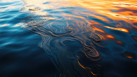 A close-up of polluted water with an oily rainbow sheen, floating debris, and plastic waste, symbolizing the harmful effects of water contamination.
