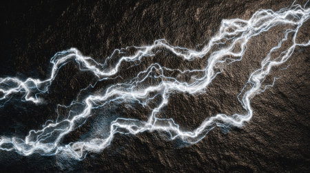 This stunning image captures a dynamic electric lightning bolt pattern over a dark water surface, showcasing the dramatic contrast between light and shadow.