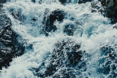 Serene Aquatic Landscape Featuring Foaming Waves and Cold Shades Evoking Tranquility and Motion