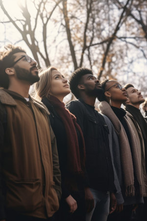 shot of a diverse group of people standing together outdoors, created with generative ai