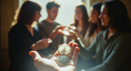group of people, with jesus christ in the center, sharing their burdens and receiving comfort, created with generative ai