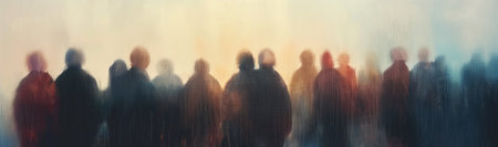 Unique Individual Standing Out in a Crowd of Abstract Figures in Red and Blue Tones