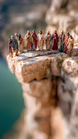 Jesus speaking to the people by parables on the mountain in the midst of nature Generative AI Illustration.