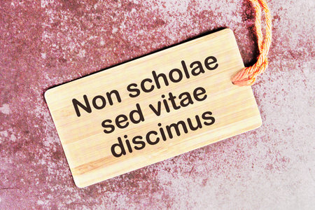 Non scholae sed vitae discimus It is translated from Latin as We study not for school, but for life on the card with the rope