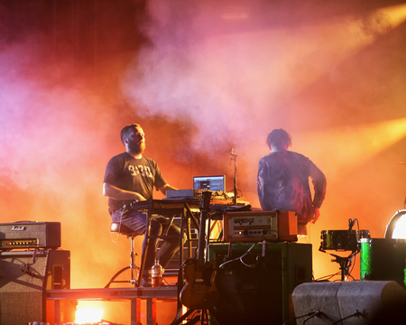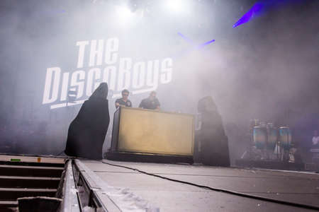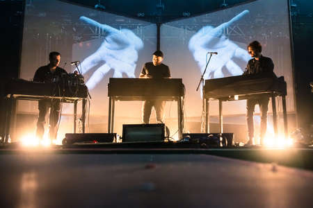 MOSCOW, RUSSIA - JUNE 29, 2014 - Electronic music project Moderat performing live at Park Live festival at at the National Exhibition Centre on June 29, 2014 in Moscow, Russia