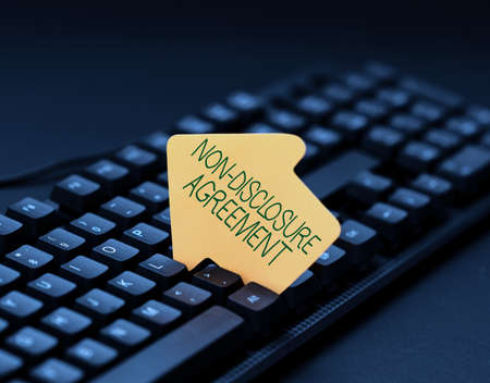 Sign displaying Non Disclosure Agreement. Business idea Legal Contract Confidential Material or Information Copying Old Ideas And Creating New Ones, Transferring Written Notes