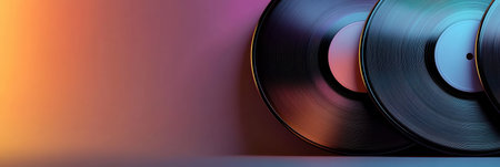 Three 3D vintage vinyl records are arranged against a colorful background, creating a captivating display with plenty of space for text.