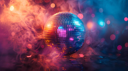 AI Generated. Disco ball reflecting light in a smoky environment during a party or event setting