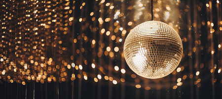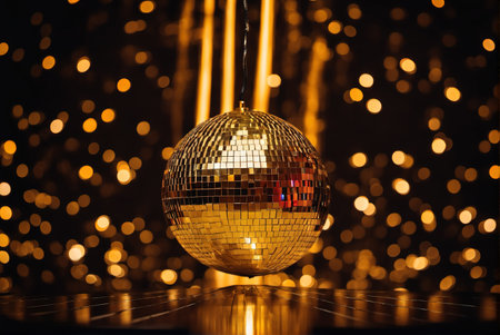 Classic disco ball hanging and reflecting light, creating a festive atmosphere, perfect for party or celebration concepts. Ai generated image