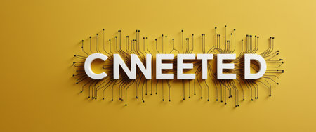 Connected Text with Circuit Board Elements on Yellow