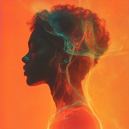 A powerful visual of a woman with a symbolic representation of her mind, featuring cracks or shadows, illustrating the effects of trauma and mental health struggles.