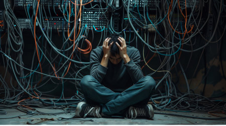A person's thoughts and emotions are like a jumbled mess, representing the chaos of anxiety. Generative AI