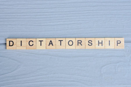 Conspirology - words made of wooden blocks with letters, secret plan of powerful people, conspiracy theory concept, top view blue background.