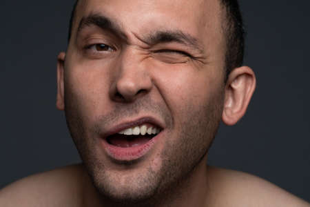 An Indian or asian guy showing his funny facial expression to the camera. Blurred or defocused image.