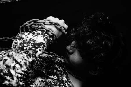 vintage tone of Shot focus of hand of Woman Liberation from the chains