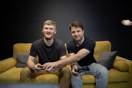 Saint-Petersburg-18 August, 2020: Joystick for game console on black background. Game console with a joystick. Home video game console.