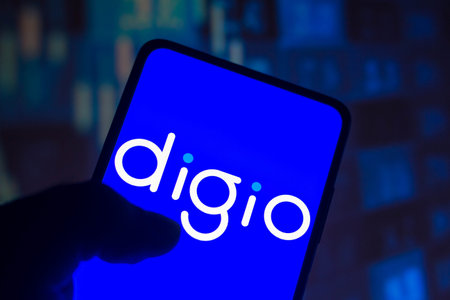 Rheinbach, Germany 8 August 2022, The logo of the cryptocurrency Digibyte on the display of a smartphone (focus on the logo)