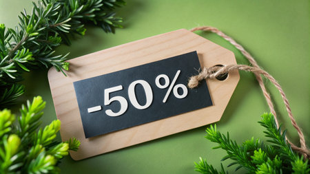discount sign - 60% on window in fashion store showroom on green summer clothes background