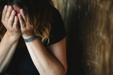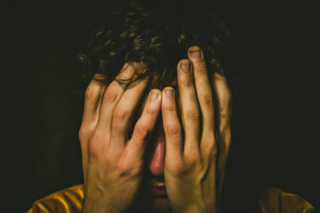 a person with hands over their face.