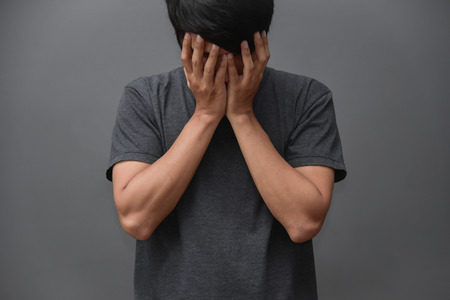 Grief. Man closed face, negative emotions cry or grief
