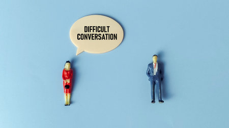 Two Miniature Figures Separated by Speech Bubble with 'DIFFICULT CONVERSATION' Representing Conflict Resolution and Communication