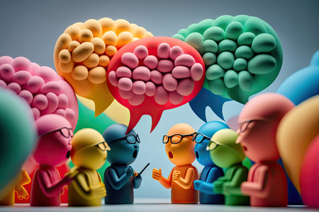 ai generated illustration of tiny people series, sharing thought, ideas by communicated and brainstorming