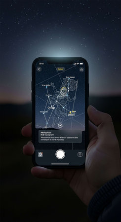 Amazed orbital station astronaut surprised by beauty of planet in space, using AR tech. Elated cosmonaut using augmented reality astonished by galaxy celestial bodies, rotating 360 degrees, camera B