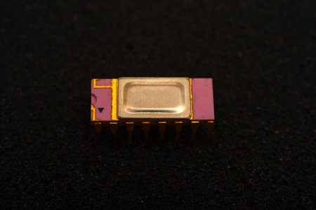 Closeup photograph of an single electronic integrated circuit chip