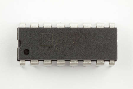 The microcircuit. An old microcircuit on a white background. An electronic device.
