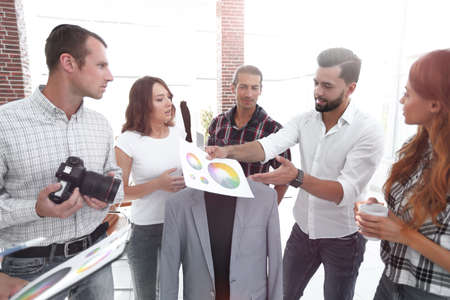 Group of professional designers choosing suitable colors from palette