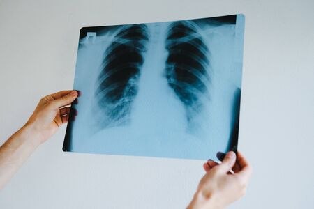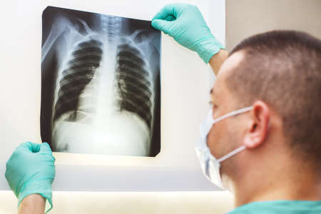 Healthy lungs after pneumonia.Doctor looking at an x-ray. The doctor does an examination of the lungs.