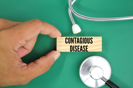 stethoscope and finger holding a stick with the word infectious disease. concept of infectious disease. dangerous disease