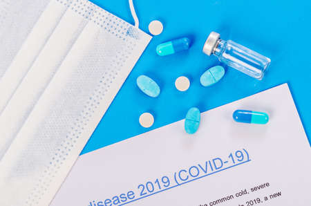 Protective medical mask and pills capsules for treatment of COVID-19 coronavirus.
