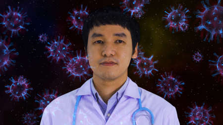 male doctor with coronavirus (covid-19) floating in the air