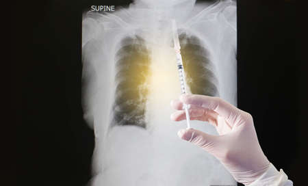 Doctors are preparing medicines and vaccines to inject the patient. lung x-ray comparison