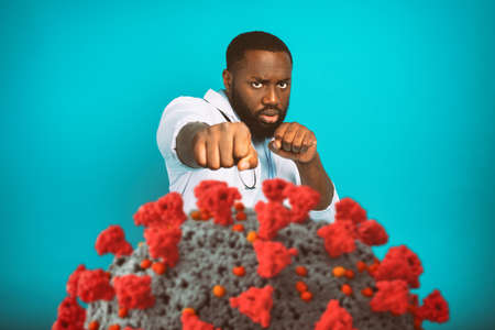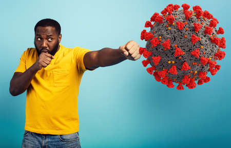 Man attacks with a punch the coronavirus.