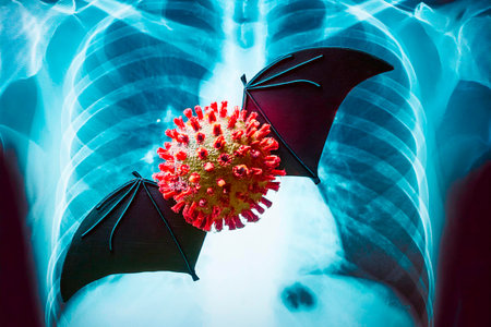 Microscopic view of HKU5-CoV-2 virus, a human coronavirus,