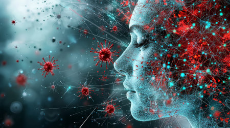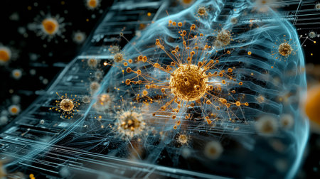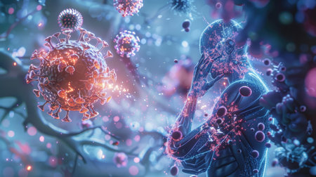 Conceptual image of viruses within the human body, highlighting the mechanisms of infection and immune response.