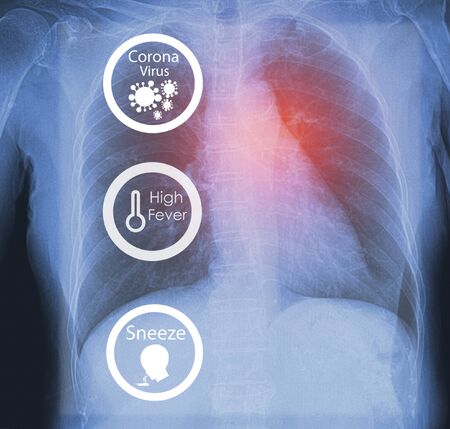 Lung X-ray and thermometer on the table with copyspace. High quality photo